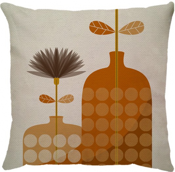• Capa para almofada com zíper invisível, feita em linhão crú com impressão na frente de Vasos Terracota/Café e verso liso. Tecido em Linhão 100% Poliéster. Dimensões da Capa: 43 cm X 43 cm. Não acompanha enchimento.