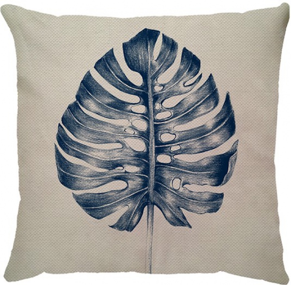 • Capa para almofada com zíper invisível, feita em linhão crú com impressão na frente de uma folha Livistonia e verso liso. Tecido em Linhão 100% Poliéster. Dimensões da Capa: 45 cm X 45 cm. Não acompanha enchimento.