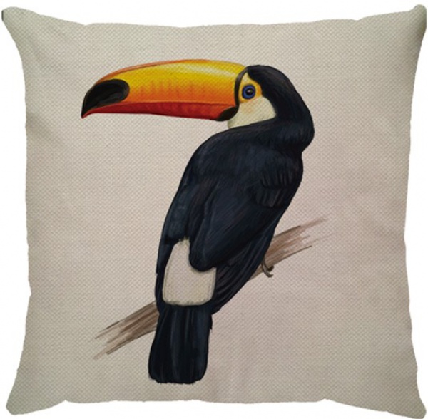 • Capa para almofada com zíper invisível, feita em linhão crú com impressão na frente de um Tucano e verso liso. Tecido em Linhão 100% Poliéster. Dimensões da Capa: 45 cm X 45 cm. Não acompanha enchimento.