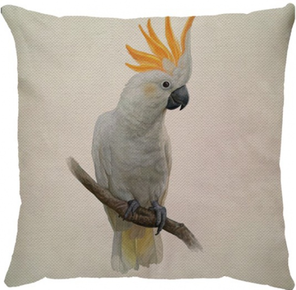 • Capa para almofada com zíper invisível, feita em linhão crú com impressão na frente de uma Cacatua e verso liso. Tecido em Linhão 100% Poliéster. Dimensões da Capa: 43 cm X 43 cm. Não acompanha enchimento.