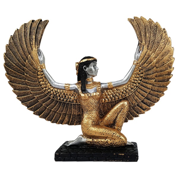 • Deusa Egípcia Ísis confeccionada em resina com excelente acabamento, rico em detalhes, produzido de modo semi artesanal, com pintura realizada a mão. Medidas: Altura: 17 cm. Largura: 22 cm. Comprimento: 4,5 cm.