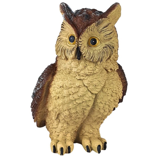 • Belíssima escultura em resina policromada moldada na forma de coruja. Alt. 27cm.