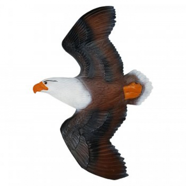 • Águia em resina com riqueza de detalhes policromada. Medindo 37, 5 cm de altura x 27,5 cm de comprimento. Possui alça para ser pendurado na parede.